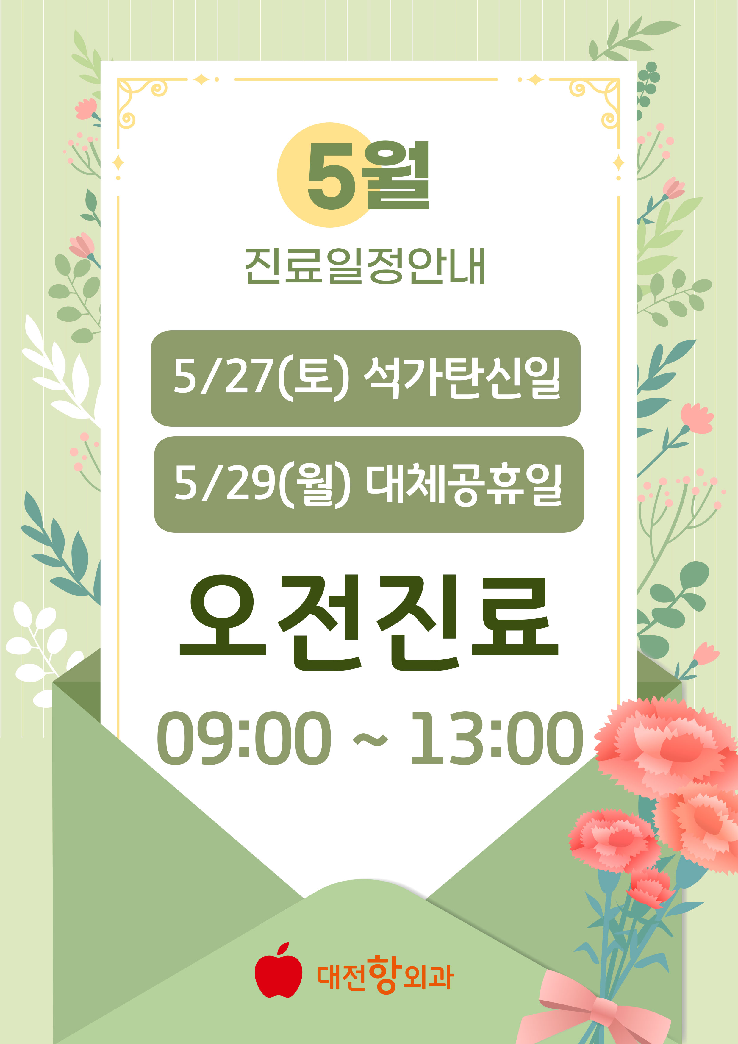 5/27(Åä) ¼®°¡Åº½ÅÀÏ, 5/29(¿ù) ´ëü°øÈÞÀÏ Áø·á ÀÏÁ¤À»